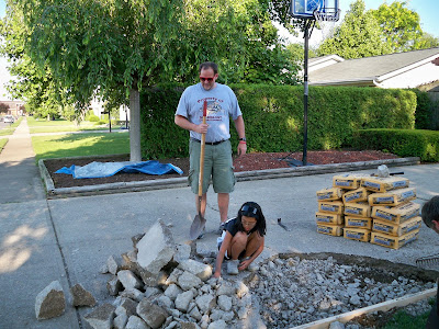 I really have negleted my blog and I won't go into my reasons for it, instead, I will post my new blog. Summer means getting those projects done that we just didn't have time for throughout the school year. One project that we have wanted to do for awhile is patch our driveway. Well, actually we wanted to replace it but when we got the estimate we almost had to go to the E.R. for heart failure. Concrete is so expensive! We had some friends visit from Branson who the guy is Mr. Fix It. He helped Steve patch the crater in our driveway. I got a kick out of their daughter Hannah who is 6th grade she is a daddy's girl and anything daddy is doing she is right beside him. Here are some pics of our project....